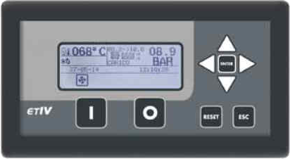 وحدة تحكم مع شاشة عرض رسومية LCD بإضاءة خلفية متعددة الوظائف ، والقائمة من النوع المنسدل. يتم العرض في الشاشة الرئيسية: